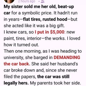 My sister sold me her old, beat-up car for a symbolic price. The thing hadn’t run in years—flat tires that looked like pancakes, a hood eaten by…