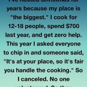 I’ve hosted Christmas for years because my place is “the biggest.” I cook for anywhere from twelve to eighteen people, spent nearly $700 last year, and get…