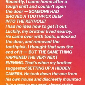 After a long shift one evening, I came home and couldn’t unlock my front door. Someone had jammed a toothpick deep into the keyhole. My brother came…