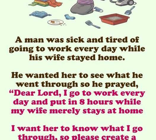 “Lord, I go to work every day and put in a full shift while my wife stays home. I want her to understand what I deal with. Let us trade places.”