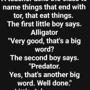 A teacher asks the class to name things that end with “tor” and eat things……CONTINUE READING BELOW The first boy says, “Alligator.” The teacher responds, “Very good,…
