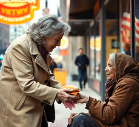 The streets were wet with the remnants of last night’s rain, puddles reflecting the gray sky. I walked the familiar path to the diner, the city waking up around me. The homeless woman was in her usual spot, but this time, she stood when she saw me approaching, a small smile on her lips.