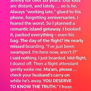 I’m 50 and have been married to Jeffrey for over 20 years. Our kids are distant, and lately … so is he. Always “working late,” glued to…