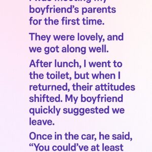 I was meeting my boyfriend’s parents for the first time. They were lovely, and we got along well. After lunch, I went to the restroom, and when…