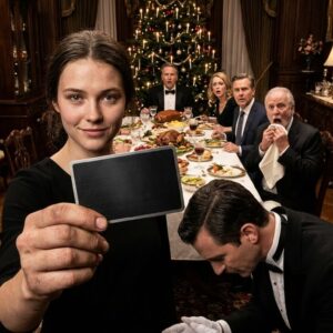 At Christmas dinner, my husband slid the divorce papers across the table and smirked. His family laughed. “You’ll leave with nothing, you useless gold-digging housewife,” his mother sneered. “Sign and disappear,” I said nothing. I simply called the waiter. “The bill, please.” I handed over a black card. The waiter froze. “Sir… ma’am… this card—” That was the moment they learned who I really was—and that I was about to take everything from them.